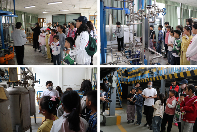 活动第一站,小朋友们在老师的带领下参观化工实验室,童敏曼教授和黄芳敏老师为大家讲解了化工生产流体输送、精馏装置和填料塔等设备的原理和操作方法。讲解过程中,老师采用生动形象的比喻将抽象的化工原理变得生动有趣,通过与同学们的互动激发起小朋友们探索的热情,也让小朋友们对化工生产的过程有了初步的认识。