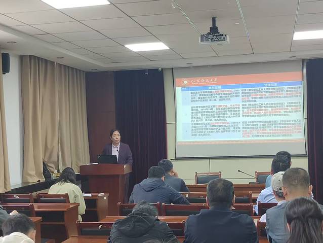 活动伊始,学院党委书记吴晨围绕《新时代高校教师职业行为十项准则》、《研究生导师指导行为准则》、《江苏师范大学教师师德失范行为处理暂行办法》等文件带领全体教师开展专题学习。随后,吴书记对照《教师师德失范警示案例选编(二)》及教育部网站公开曝光的违反教师职业行为十项准则典型案例,分别从违纪违规、师德失范、学术不端、违规谋利等不同方面,精准有效开展警示教育,引导教职工以案为鉴,自我检视,筑牢防线,守住底线。她强调全体教师要“以德立身、以德立学、以德施教”,要将师德准则内化为行动自觉,做到学术诚信、廉洁从教等具体要求。