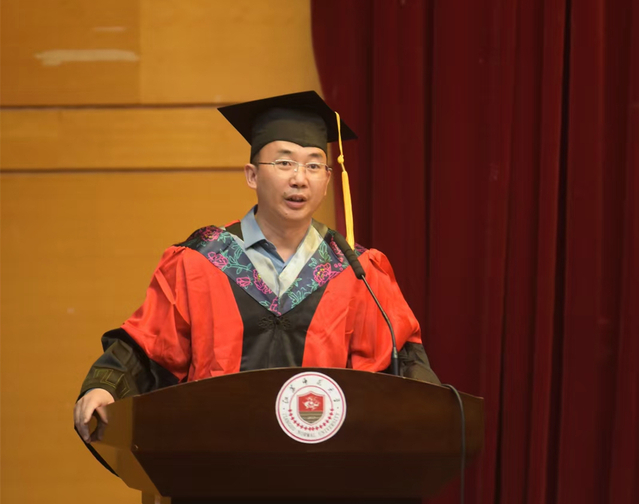 典礼在雄壮激昂的国歌声中拉开帷幕。院长赖超教授进行致辞,回顾了毕业生求知探索的青春足迹,肯定了他们在知识积累与品格塑造中取得的进步。赖院长寄语毕业生要坚定信念,脚踏实地追逐人生梦想;要永葆热忱,矢志不渝探索科学真理;要砥砺前行,坚韧不拔迎接未来挑战;要珍惜当下,向阳而生拥抱幸福人生。