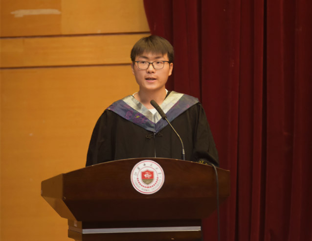 本科生毕业生代表吴佳男和研究生毕业生代表张明带领同学们一同回顾了美好的大学生活,深情表达了对师长和母校的感恩眷恋,勉励毕业生们怀爱国之心、立报国之志、增强国之能,永葆热烈向前的勇气,大胆追逐青春梦想。