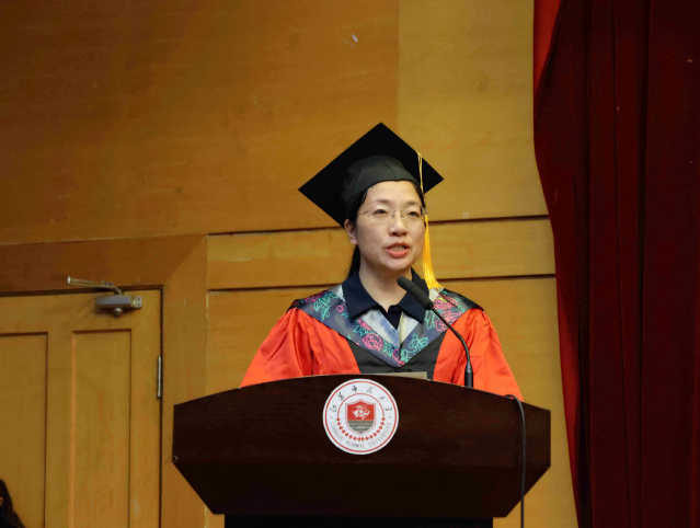 教师代表盖艳丽发表临别赠言。她深情回忆了与同学们相处的美好时光,勉励毕业生永葆求知热情,以豁达心态直面未来挑战;坚守初心使命,以坚定信念勇攀理想高峰;赓续奋斗精神,以实干担当践行时代使命。