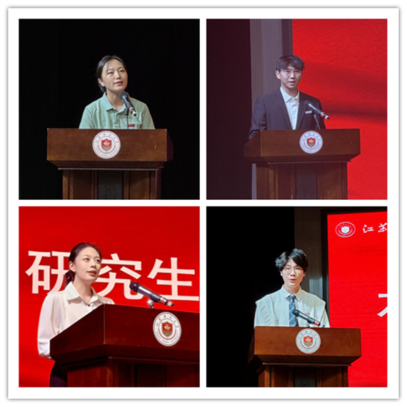 研究生新生代表帅雨田向同学们分享了她的支教经历。立志将教育热忱融入科研、服务社会;并呼吁在场同学以奋斗为青春底色,保持对化学的热爱与对真理的追求,共同在领域内发光发热。