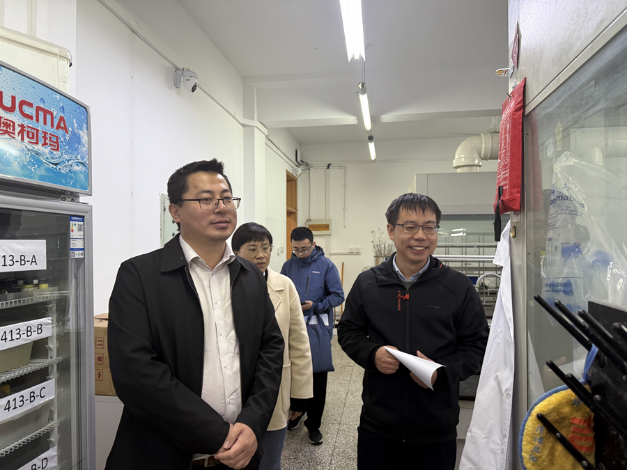 在座谈交流环节,双方就化工领域科技成果转化、人才共引共育等事项进行深入研讨,达成初步合作意向。会后,考察团实地考察了学院实验室。
