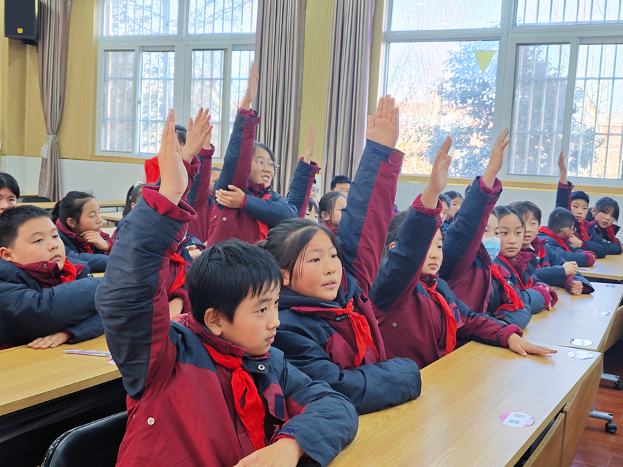 互动问答环节,孩子们参与热情高涨,纷纷举手抢答“元素周期表是如何诞生的”“魔棒点灯用到了什么原理”等问题,答题思路清晰、回答准确。