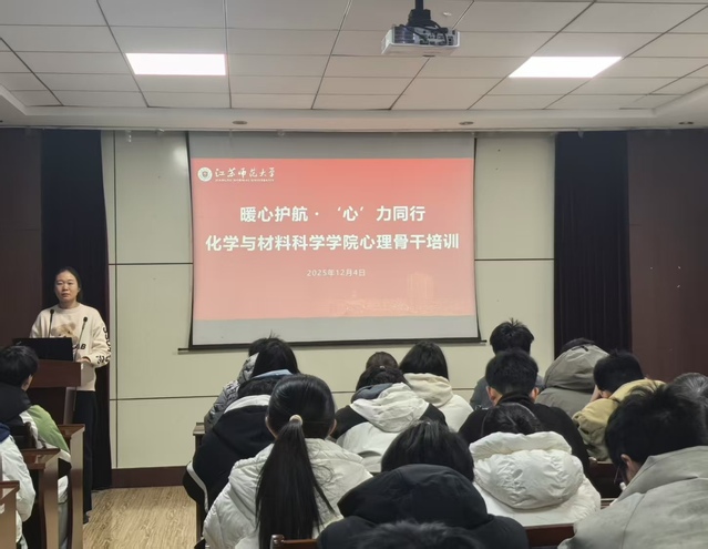 为进一步加强学院心理骨干队伍建设,提升心理委员、宿舍心理气象员的专业素养与服务能力,筑牢学生心理健康防线,12 月 4 日,化学与材料科学学院在20#211会议室召开本学期心理委员、宿舍心理气象员培训会。全院新生班级心理委员、宿舍心理气象员参加培训,本次培训由学院辅导员王倩老师主讲。