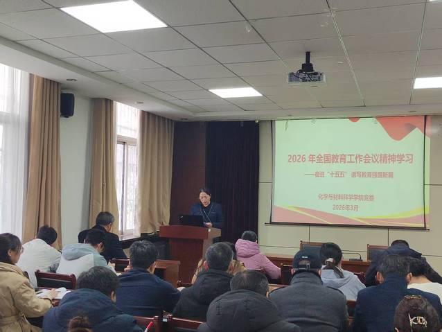 为落实立德树人根本任务,以扎实的师德师风建设为“十五五”开局起步提供坚强的育人保障,3月11日下午,化学与材料科学学院开展师德师风主题教育活动。全院教职工集中学习了2026 年全国教育工作会议精神、《教育部等六部门关于加强新时代高校青年教师队伍建设的指导意见》及《江苏师范大学教师师德手册》研究生导师行为准则部分。