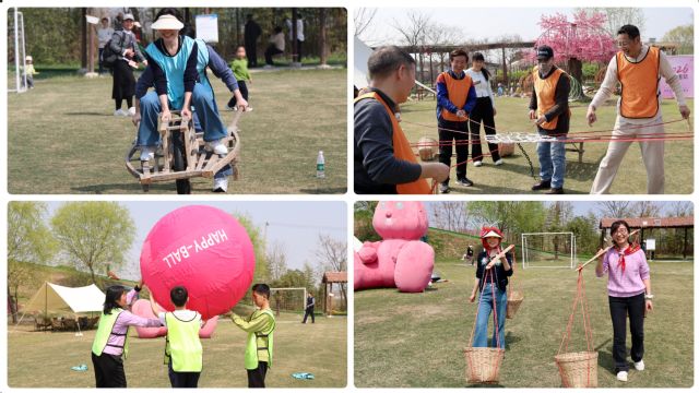 上午,老师们准时抵达活动农场,在专业教练的有序组织下,开启了趣味十足的素质拓展活动。大家手拉手围成圆圈,伴着欢快的音乐开展热身游戏,简单有趣的互动瞬间打破了工作的疏离感,迅速拉近了彼此的距离,现场氛围瞬间活跃起来。随后,教职工们随机分为三组,投入到丰富多彩的团建项目中:“独轮车接力赛”上,老师们屏气凝神、协调配合,在平衡与速度的双重挑战中奋勇争先,场外加油呐喊声此起彼伏;“捕鱼达人”环节里,大家分工协作、默契配合,欢声笑语响彻整个营地,充分展现了教职工们团结协作、积极向上的精神风貌。此外,现场还精心准备了挑扁担、Happy-Ball等特色项目,让老师们在轻松愉悦的氛围中尽情释放工作压力,收获满满欢乐。