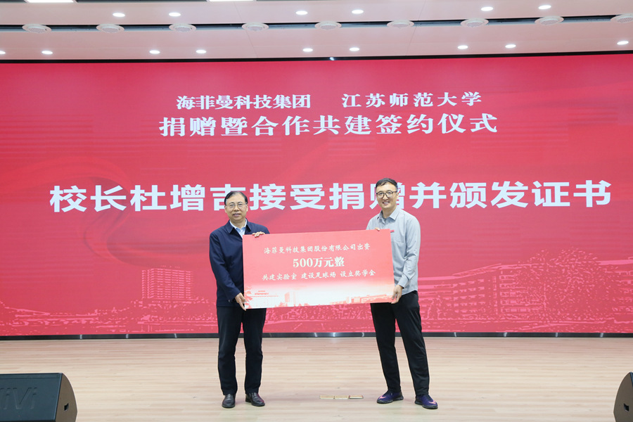 海菲曼科技集团由边仿于2011年4月创立,并于今年3月成功上市。自创办以来,公司始终秉持“革新听觉的艺术”使命,专注高端音频全链条自主研发,被《福布斯》杂志誉为中国智造标杆,荣膺国家专精特新“小巨人”企业称号,是细分领域少数具有全球影响力的中国厂商。此次海菲曼科技集团出资500万元,其中:捐赠200万元用于建设“海菲曼足球场”、设立“海菲曼奖学金”、支持学校足球赛事等,另提供300万元仪器设备与学校共建“海菲曼-江苏师大联合实验室”。