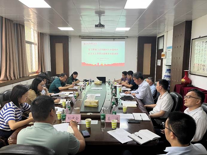董晓臣副校长肯定了学院学习贯彻习近平新时代中国特色社会主义思想主题教育和近年来在学科建设、社会服务等方面取得的成绩。同时,董校长还针对学院科研团队建设、科研成果等方面存在的不足提出改进建议。董校长指出,学院要发挥学科优势,在科研团队建设和考核机制创新上积极探索,进一步推动学院高质量发展。