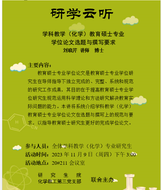 “我为师生办实事”系列活动之“研学云听”讲座(十)——学科教学(化学)教育硕士专业 学位论文选题与撰写要求