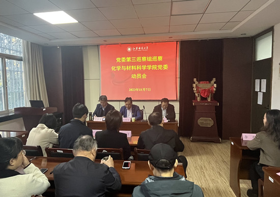 根据校党委关于巡察工作的统一部署,11月7日,校党委第三巡察组进驻化学与材料科学学院党委,在化学楼211会议室召开巡察动员会。校党委第三巡察组组长、校党委常委、副校长杜增吉及巡察组全体人员,化学与材料科学学院全体教职工出席会议。院党委书记王香善主持会议。