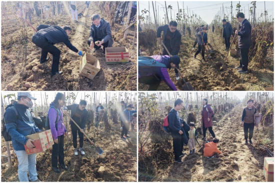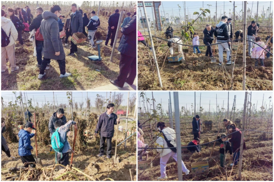 学院党委一行来到丰县宋楼镇状元集村三乡工程示范基地智慧化生态示范园,在讲解员的带领下了解了该生态园的基本情况、发展现状和经营模式等。在村民的带领下,老师们来到红薯地,在乡间田垄里一起挖红薯并帮助村民将其称重、装箱。老师们通过亲身体验红薯丰收的劳作以及与乡亲们愉快的交流既深切地体会到农活的艰辛、农民的辛勤,同时也真实感觉到丰收的喜悦与满足。结束后,老师们也自行购买了当地的一些农产品。