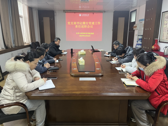 12月26日下午,化学与材料科学学院党委在化学楼209会议室召开2023年度党支部书记履行党建工作责任述职评议会,学院全体支部书记参加,会议由院党委王香善书记主持。