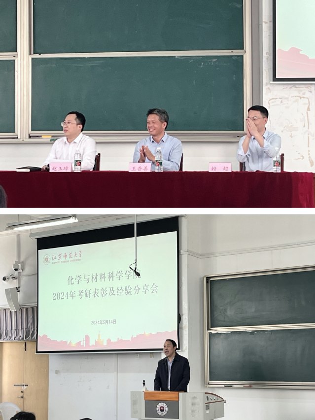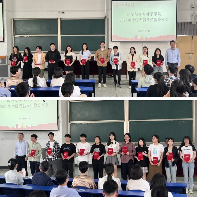 5月14日中午,化学与材料科学学院在17号楼200D教室召开2024年考研表彰及经验分享会。学院王香善书记、赖超副院长、赵玉璋副书记、荣良策教授、学院辅导员、20级和21级本科生班主任、20级考研学生代表、21级全体本科生参加了此次会议。会议由院党委赵玉璋副书记主持。