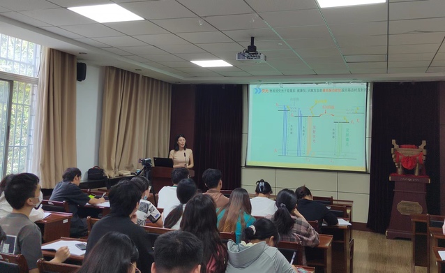 宗成华副教授从荧光产生的机理、分子荧光分光光度计的构造、荧光分光光度计的应用领域及前沿技术等多个方面进行了详细的阐述,逐一讲解了光源、单色器、样品室、检测器等关键部件的功能和作用,并通过图片形式展示了整个仪器的工作流程。宗老师还介绍了荧光分光光度计在药物分析、环境监测、生物成像等多领域的应用和显著成果,鼓励研究生们积极探索荧光分光光度计的新应用和新方法,为推动科研事业的发展贡献自己的力量。