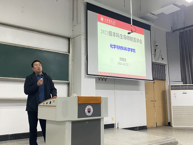 会上,刘院长首先深入剖析阐释了《化学与材料科学学院本科生导师制实施方案》的相关规定,使同学们对导师制的具体实施路径和要求有了清晰的认识。随后,刘院长向各位同学介绍了学院的师资队伍情况。他强调,学院一直将本科生的培养工作视为核心任务,致力于为学生提供最优质的教育资源和指导。最后,刘院长提出同学们应尽快与导师进行对接,充分利用导师的专业知识和人生经验,为自己制定一个切实可行的职业规划,加速个人成长与成才的进程。