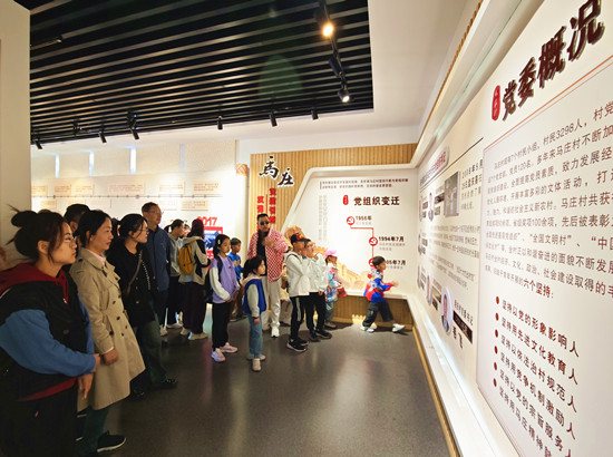 沿着习近平总书记的视察之路,全体党员先后参观了马庄村文化礼堂、村史馆、党员活动室以及香包制作室。在讲解员的带领下,党员们聆听着采煤老村的蝶变记,了解了马庄村从一个煤炭资源枯竭的小村庄变成全国乡村振兴示范村的光辉历程,再一次学习了习近平总书记在马庄的讲话精神,感悟着“一马当先的勇气和马不停蹄的毅力,以跃马扬鞭的速度,实现马到成功的效率”的马庄精神。